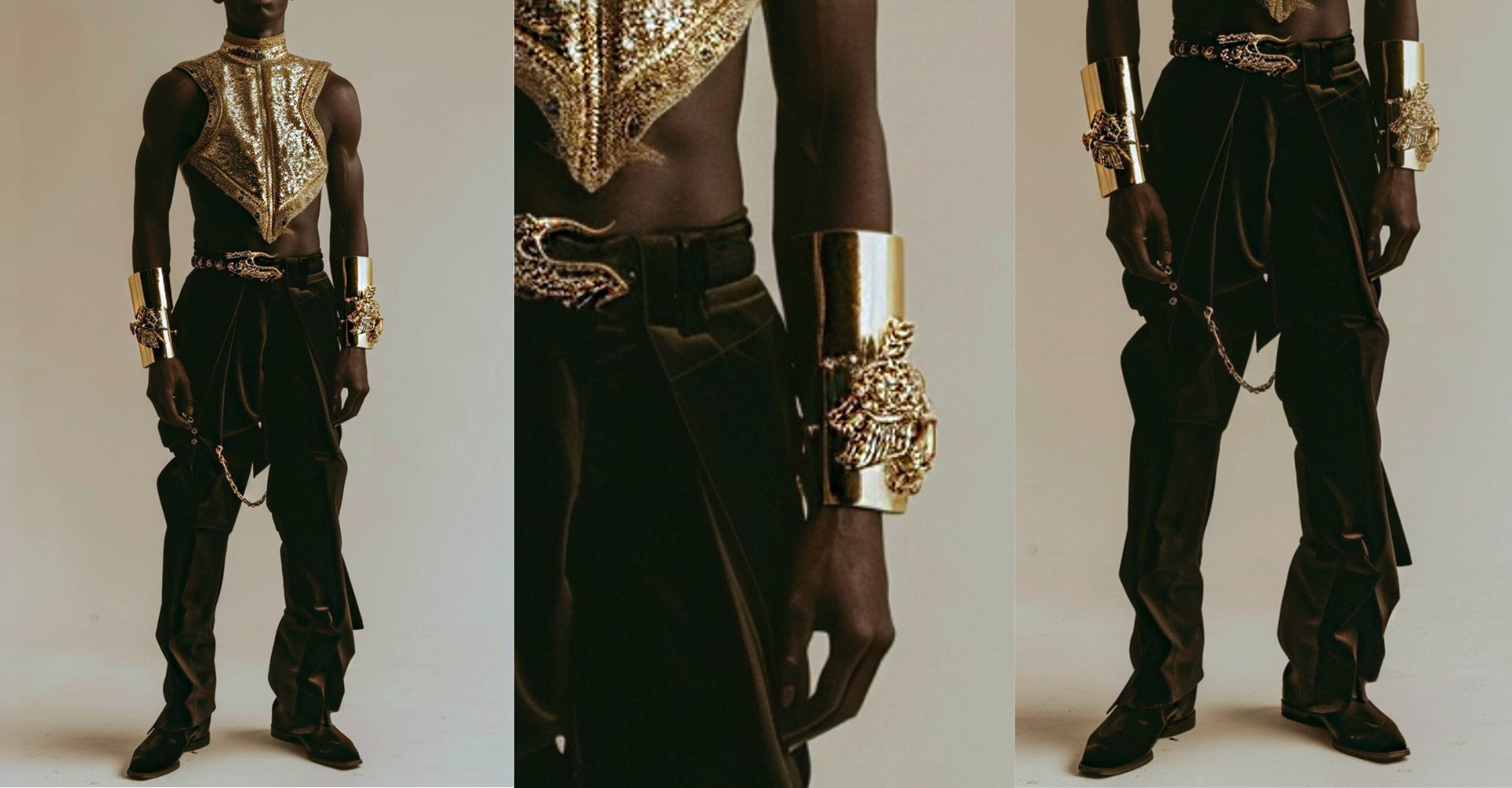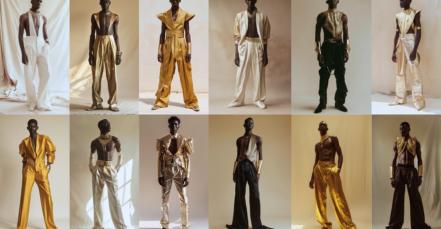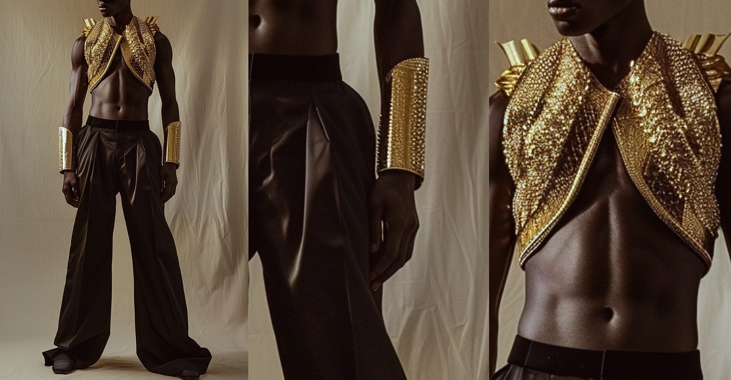 Then, earlier last week, I saw Dario Vitale’s debut collection for Versace. What caught me off guard was the similarity in certain details to my own AI concepts from two months prior. Not because I believed anyone had copied my work, but because it showed how two creators, working from entirely different inspirations, could arrive at surprisingly aligned visions.