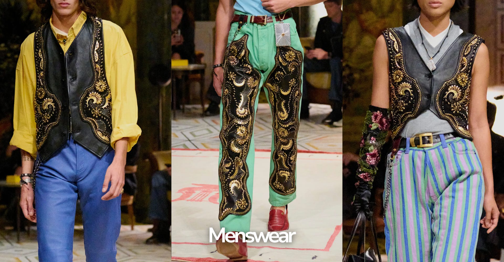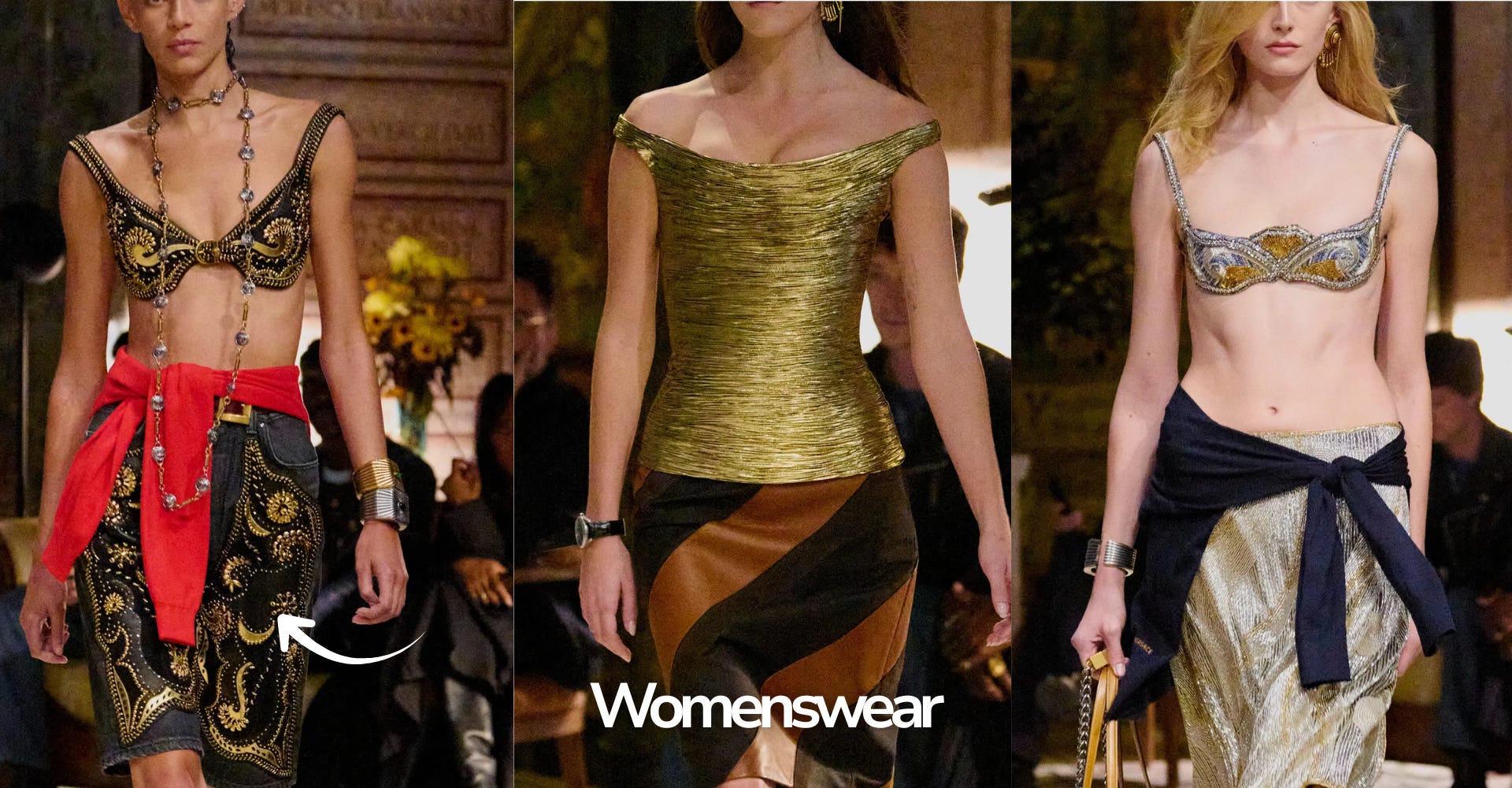 While Dario’s collection drew inspiration from ‘80s bourgeois style and Gianni Versace’s ‘90s Miami opulence, my work was rooted in ancient Egyptian symbolism, reimagined for today’s world.
